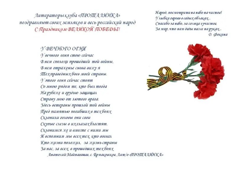 Поздравляют своих земляков и весь российский народ литераторы клуба «ПРОТАЛИНКА»