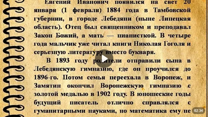 Ермаковская Центральная библиотека представляет вам презентацию, посвященную 140-летию русского и советского писателя, публициста и литературного критика, киносценариста, морского инженера, педагога и социалиста Евгения Ивановича Замятина.