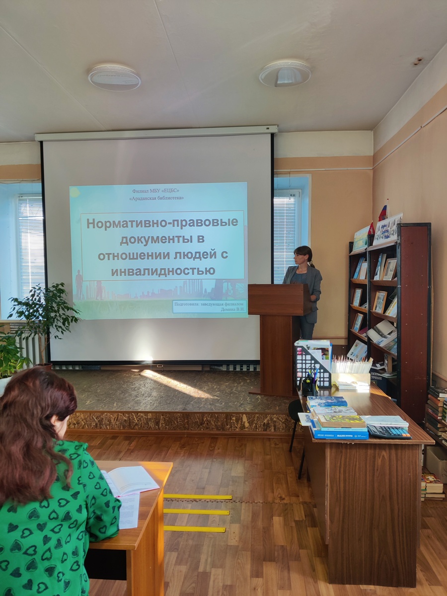 10 октября 2023 года в Центральной библиотеке состоялось семинарское занятие специалистов муниципальных библиотек Ермаковского района. Цель семинара – проведение инструктажа по работе с людьми, имеющими ограниченные физические возможности здоровья и обобщение опыта работы библиотек района с этой категорией пользователей. В образовательном мероприятии приняли участие 34 сотрудника – заведующие филиалами, заведующие отделами и библиотекари Центральной библиотеки, библиотекари Детской библиотеки, а также директор и заместитель директора по работе с детьми МБУ «ЕЦБС».