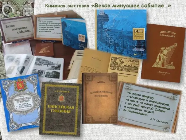 В центральной библиотеке в рамках Дня Краеведения, оформлена книжная выставка «Веков минувшее событие…», которая посвящена 200-летию Енисейской губернии.