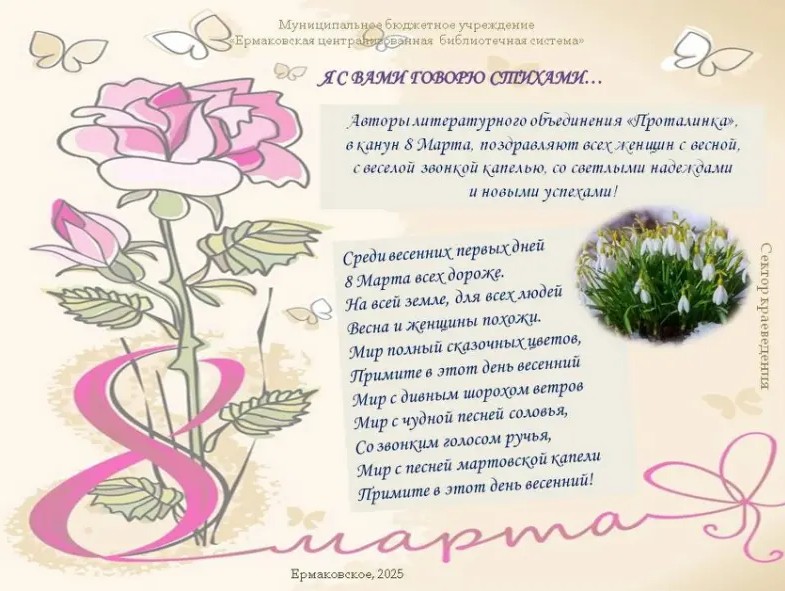 Авторы литературного объединения «Проталинка» поздравляет всех женщин с весенним праздником 8 марта