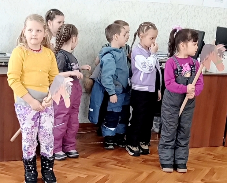 В Ермаковской детской библиотеке состоялось незабываемое литературное путешествие «Сказочная карусель» для дошкольников Ермаковского детского сада №5. Ребята с интересом и азартом участвовали в интерактивной викторине «Сказочные прятки» и «Книжные герои». Очень весело угадывали по мелодиям названия мультфильмов. Проявили смекалку в конкурсах: «Сказки перепутались», «Вспомни имя». И, конечно же, бурю эмоций и смеха вызвала подвижная игра-эстафета «Конёк-Горбунок», где каждый ребёнок показал своё умение управлять сказочным конём. Не обошлось и без подарков – яркие закладки для книг с любимыми персонажами мультфильмов дополнили чудесное настроение ребят.